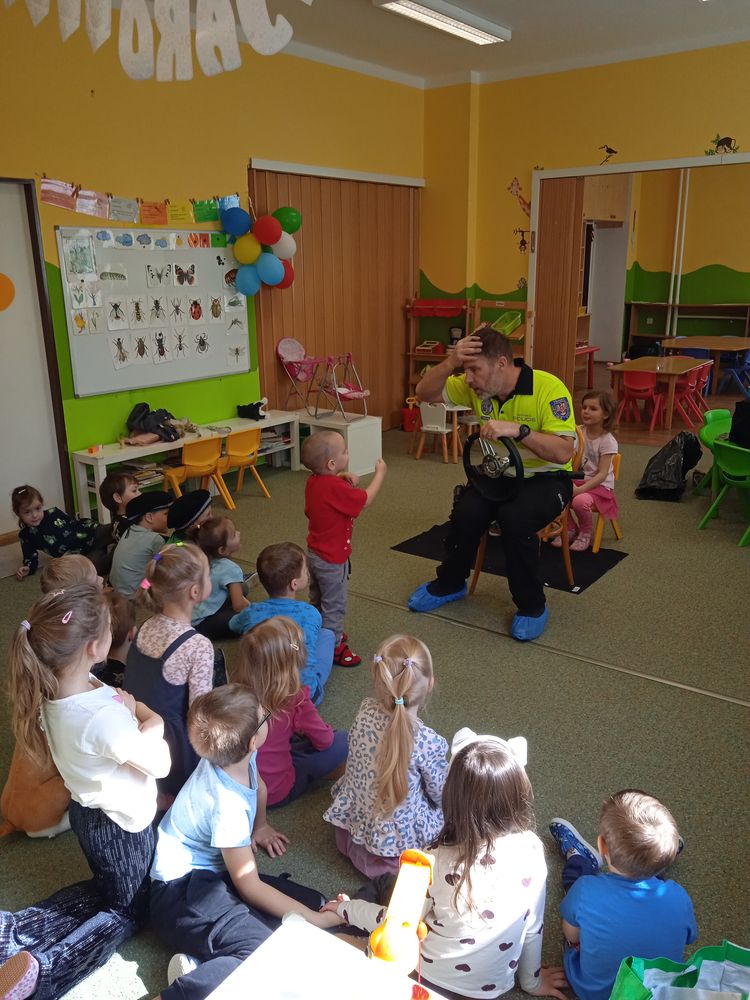 V pátek 20. 3. 2026 se konala v naší Mateřské škole U splavu beseda s preventistou MěP v Třinci panem Petrem Glaicem. Jako každý rok, tak i letos měla tato návštěva u dětí velký úspěch. Děti byly pozorné, hltaly každé slovo i gesto. Až jsme skoro záviděli, jakou si pan policista dokázal udržet celou dobu dětskou pozornost, protože víme, jak je to těžké. Asi si budeme muset pořídit policejní uniformu…