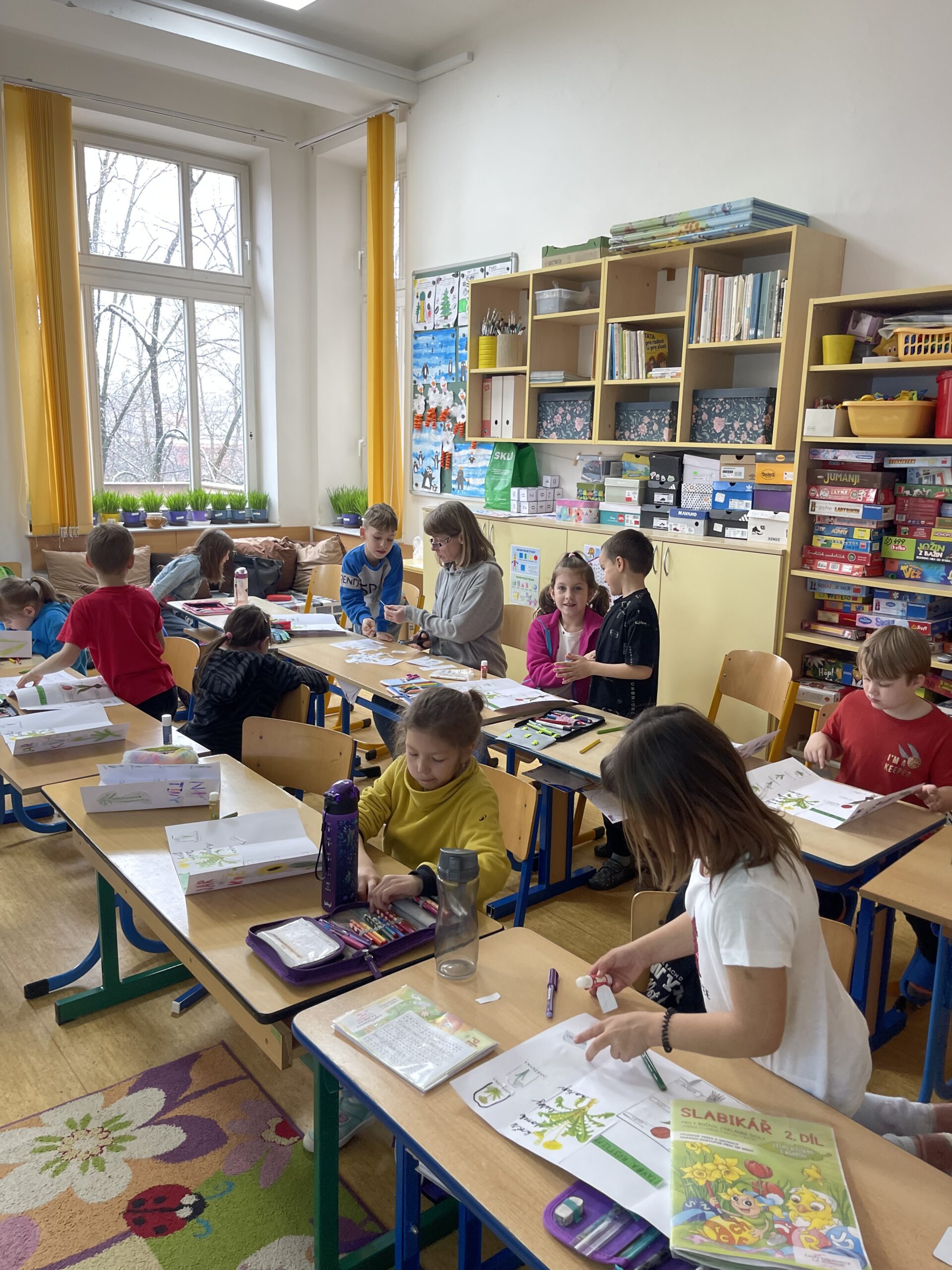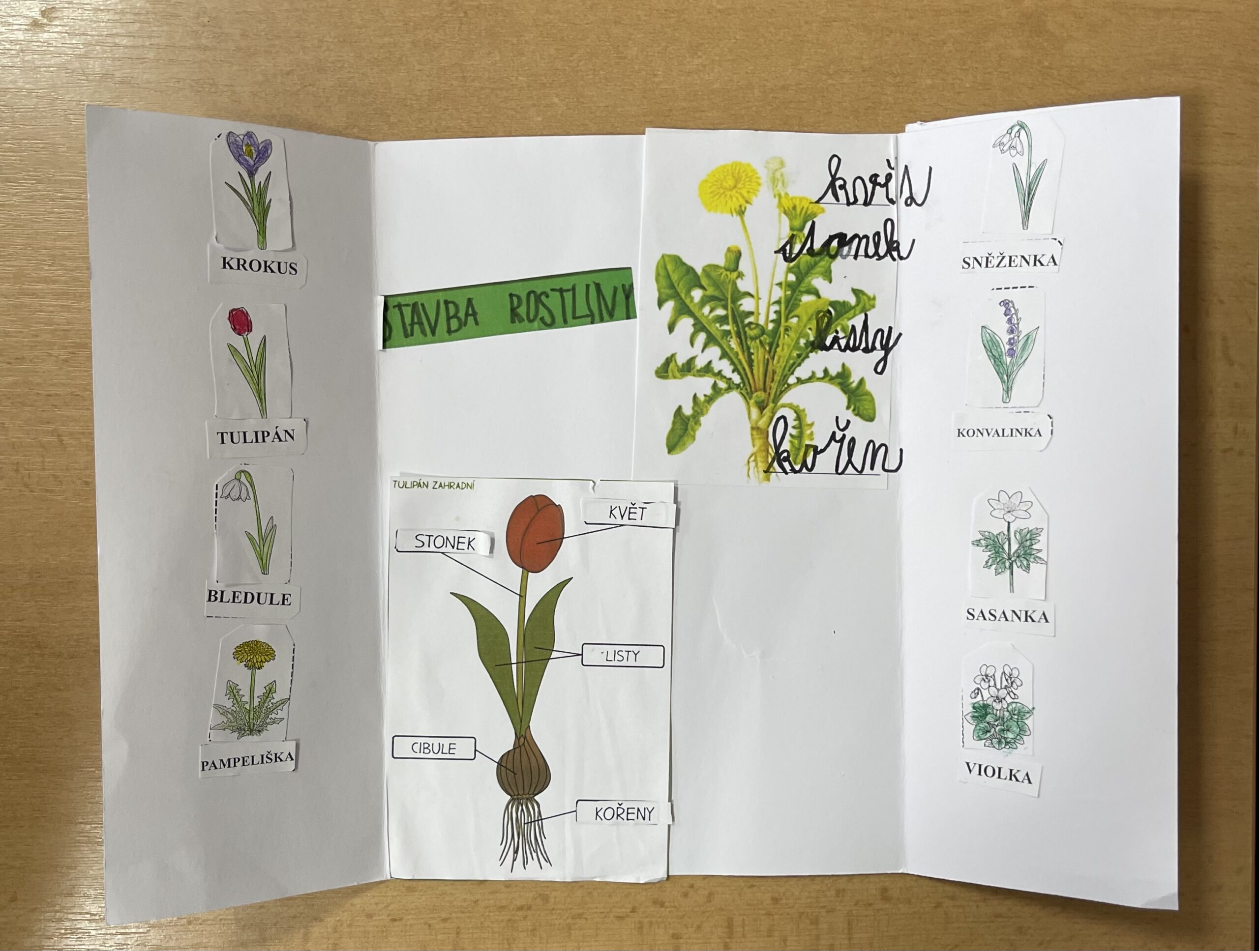 Žáci 1. A třídy se v hodinách prvouky věnovali tématu jarních květin netradiční a tvořivou formou – vyráběli vlastní LAPBOOK s názvem „Jarní květiny“. Děti se při práci na lapbooku naučily poznávat jarní květiny, pojmenovávat jejich části, pochopily rozdíl mezi cibulkou a kořenem, procvičily si čtení a psaní, zlepšily jemnou motoriku při stříhání a lepení a rozvíjely své pozorovací schopnosti při procházce do přírody. Práce na lapbooku krásně propojila výuku s reálným světem.