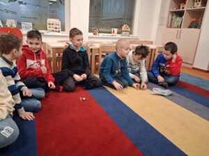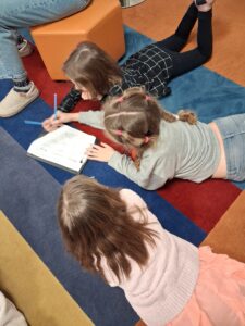 Slon a mravenec je titul knihy se kterou se seznámili naši třeťáci na lekci v knihovně minulý týden. Pracovali ve skupinách, kde měli přemýslet o hlavních hrdinech, předvídat, o čem asi kniha vypráví. V závěru hodnotili chování postav a psali vybranému hrdinovi krátký dopis. Kniha se dětem velmi líbila. Děkujeme pracovnicím knihovny za poutavě připravenou lekci.