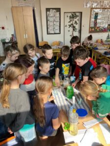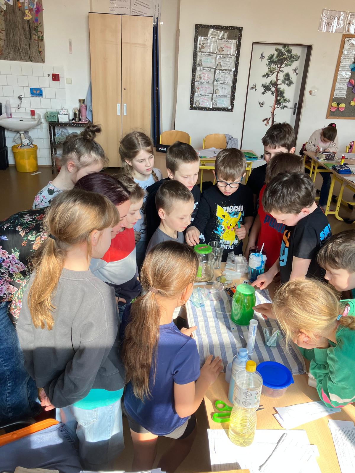 V rámci hodiny prvouky se naši třeťáci proměnili ve vědce a s velkým nadšením zkoumali vlastnosti vody. Během několika jednoduchých, ale velmi názorných pokusů se děti přesvědčily, že voda je opravdu fascinující.