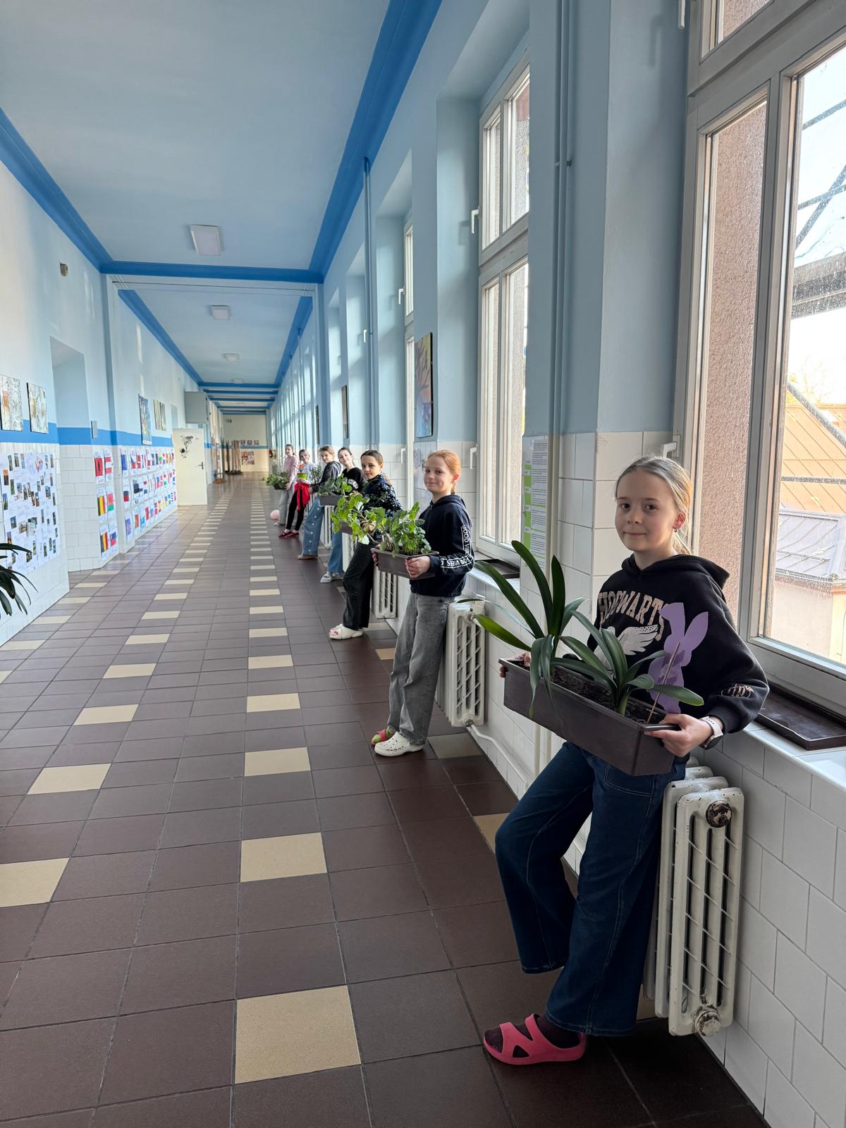 Do jarní výzdoby se zapojili všichni naši žáci. Květiny si se zájmem prohlížejí na chodbách, povídají si o nich a mnozí z nich se s radostí nechali vyfotit přímo vedle nich. Vznikly tak krásné fotografie, které zachycují nejen množství květin, ale i úsměvy a dobrou náladu našich dětí.